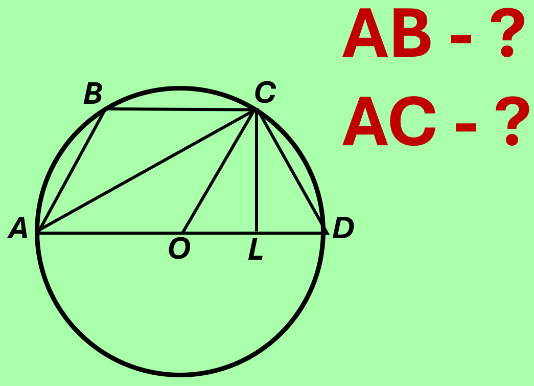 So, the height of the trapezoid, let’s call it CE (where E is a point on the base AD such that CE is perpendicular to AD), is CE = 15 cm. (The problem uses KQ = 15 cm for the diameter, which is correct).
